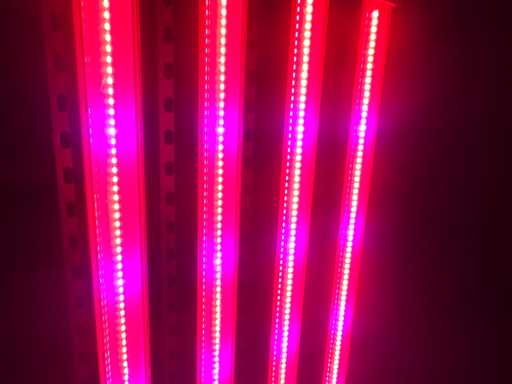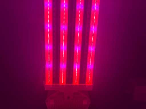 Éclairage supérieur à LED ; voir la photo 3 pour les détails exacts ; Le nombre total de LED dans cette lampe est de 152 pièces, dont 144x rouge et 8x bleu ; 95 % rouge, 5 % bleu