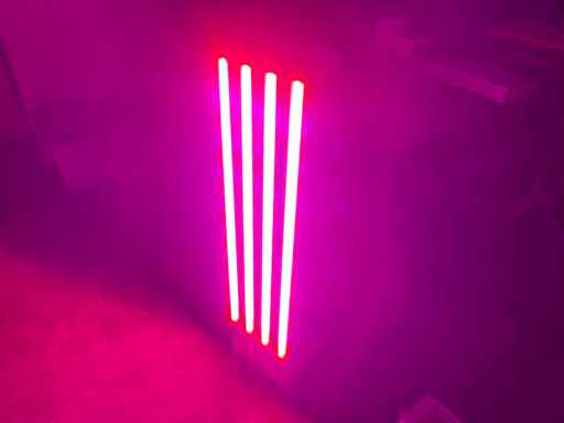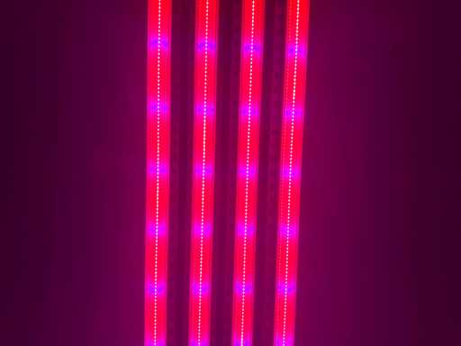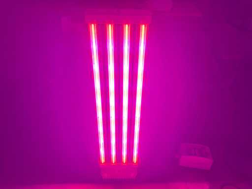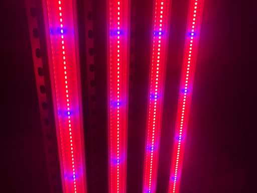 Éclairage supérieur à LED ; voir la photo 3 pour les détails exacts ; Le nombre total de LED dans cette lampe est de 152 pièces, dont 144x rouge et 8x bleu ; 95 % rouge, 5 % bleu