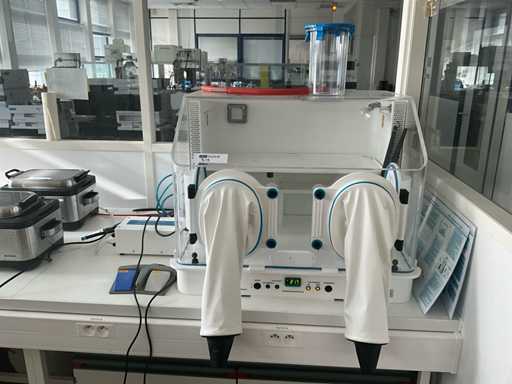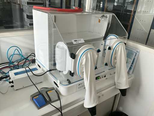 Station anaérobique permettant de travailler dans une atmosphère sans air. Composé d’une cabine 630mm x 810mm x 760mm , une pompe à vide.