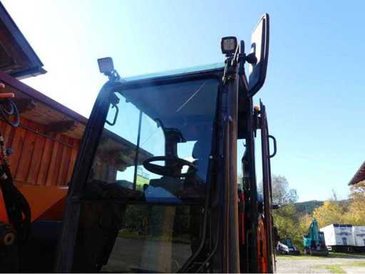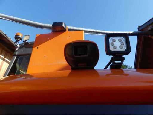 Heures d’ouverture : 2 714 h, version 4 roues avec direction aux quatre roues, pneus doubles 8.25-20 NHS 1398, bande de roulement soumis à une utilisation intensive, éclairage et approbation routière selon StVO, feux de fonctionnement en version LED, caméra de recul, caméra latérale (droite), bras excavateur avec 2 bras réglables, hydraulique auxiliaire bidirectionnel sur le manche, attelage rapide pivotant hydrauliquement avec crochet de charge,