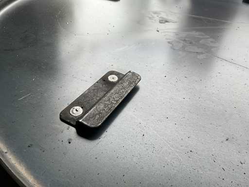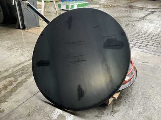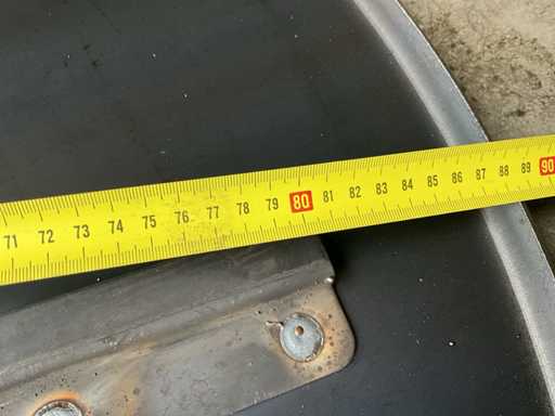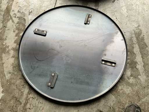 Béton, manganèse, acier ; un disque de poêle à truelle ; épaisseur de 3 mm ; 4 crochets ; diamètre de 960 mm ; inutilisé.