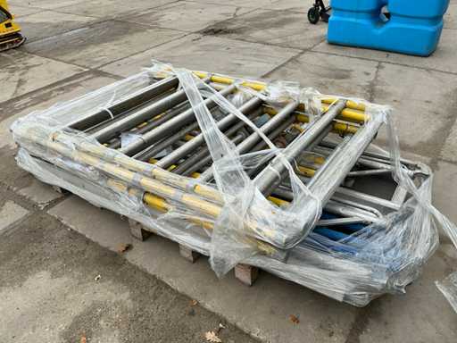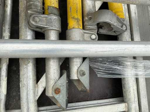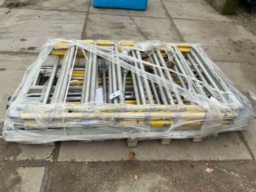 4x pièce en saillie 140x200cm, 2x pièce en saillie 140x80cm ; 4x entretoise de stabilisation télescopique ; 1x renfort horizontal 250cm, 4x renfort diagonal 250cm