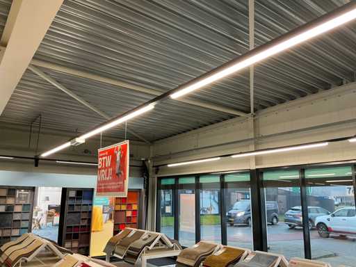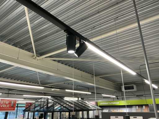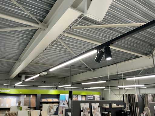 Éclairage d’atelier, 100 mètres de rails avec barres LED et 32 projecteurs