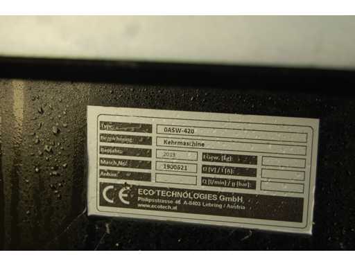 Ecotech - ASW- 420 utilisé pour tracteurs à partir de 150 CV Vitesse de la brosse 400 tr/min Diamètre du pneu de 46 cm Vitesse de fonctionnement de 40 km/h Vitesse d’entraînement de 540 tr/min Largeur de balayage de 4200 mm Poids net 2t Inclinaison à 20° Diamètre de la brosse de 92 cm