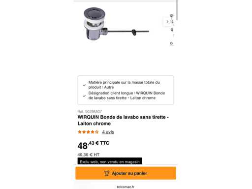 ECOUL (x6) - Bonde de lavabo Laiton Chromé sans tirette