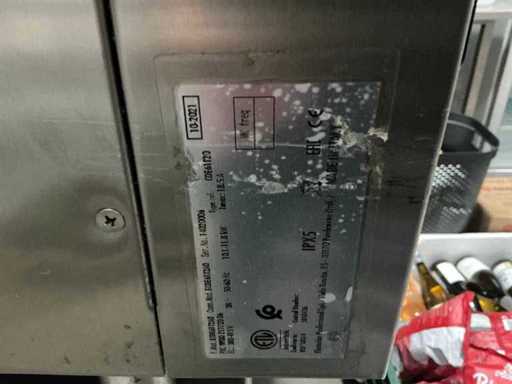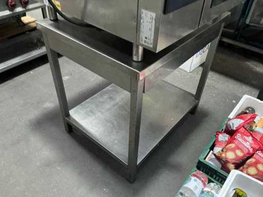 Posé sur une table en acier inoxydable avec des dimensions : 90x70x86 cm