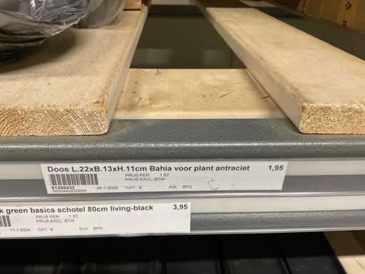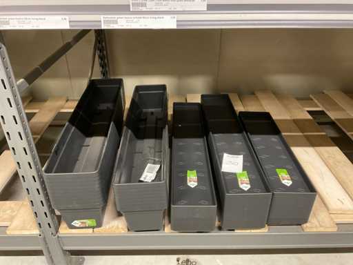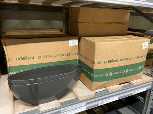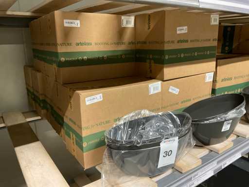 Section du contenu : rayonnage à palettes avec diverses jardinières de différentes marques et de différentes tailles, y compris 22 cm et de forme ovale 35 cm