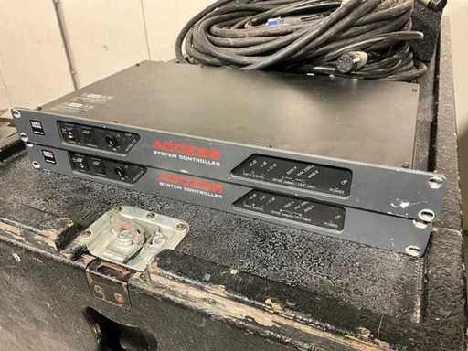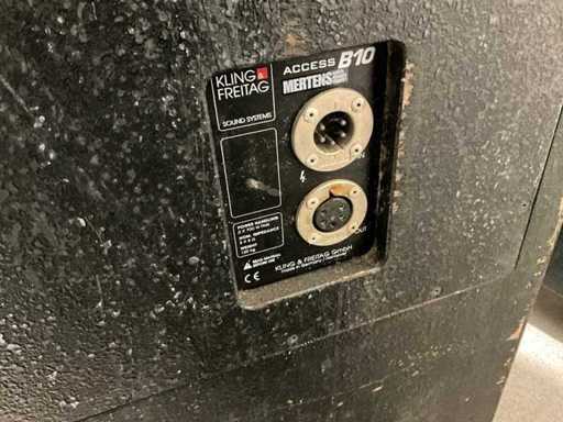 Composé de : 2x caisson de basses Kling & Freitag B10, taille approximative : 1350x600x1040 mm, 2x contrôleur système Access C10, 2x NL4 speakON > EP5 10m, 2x NL4 speakON > EP5 20m