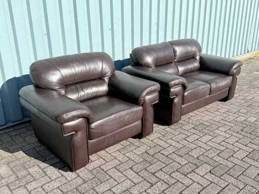 Ensemble de canapé en cuir 2 places + chaise