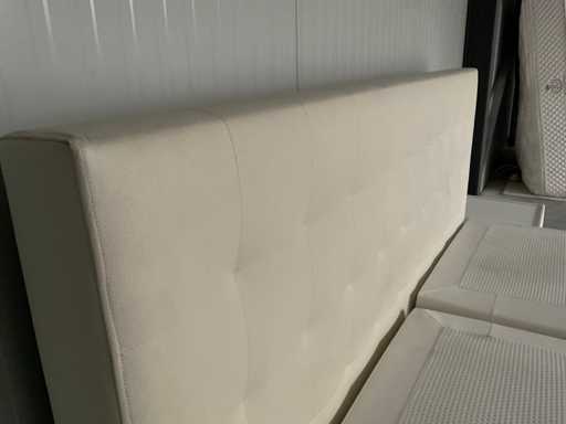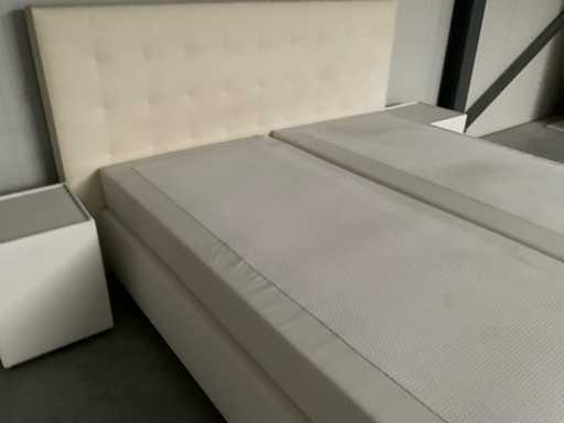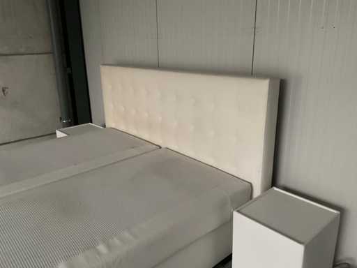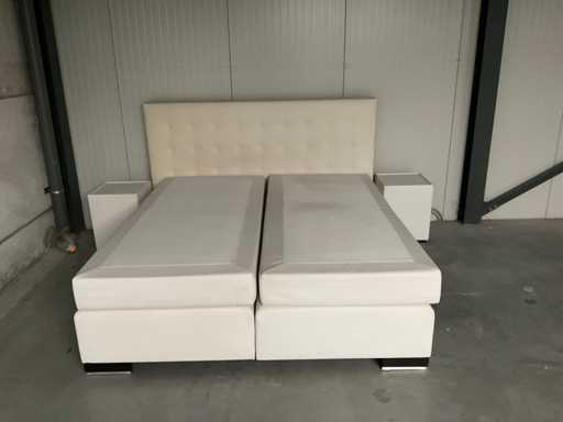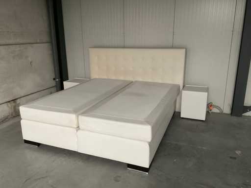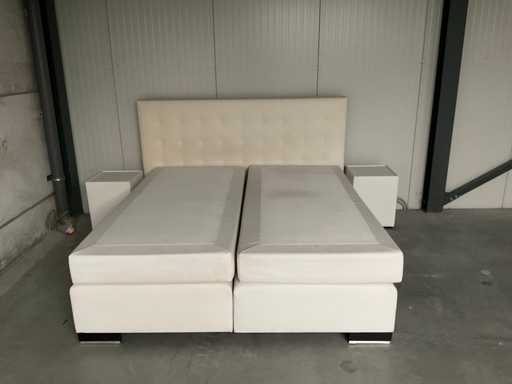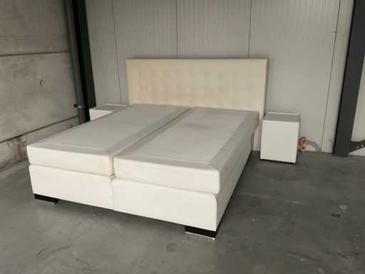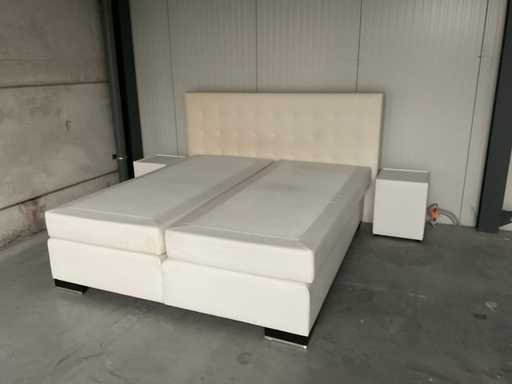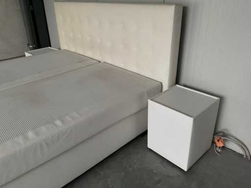 L’ensemble se compose d’un cadre de lit, d’une tête de lit, de deux tables de chevet et de 2 matelas.