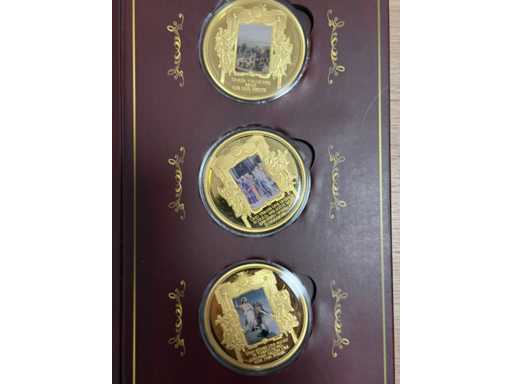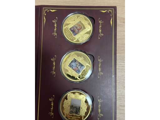 Ensemble de médailles Le Notre Père Civitas Vaticana doré avec des appliqués colorés PP