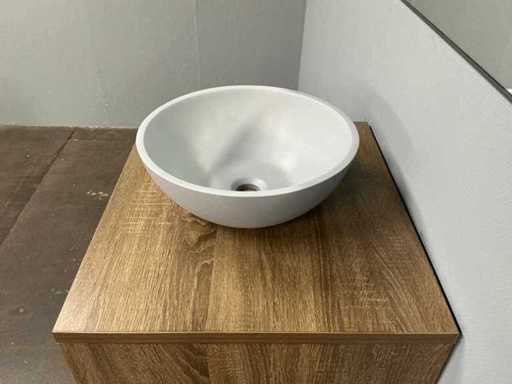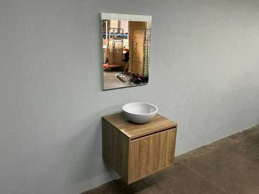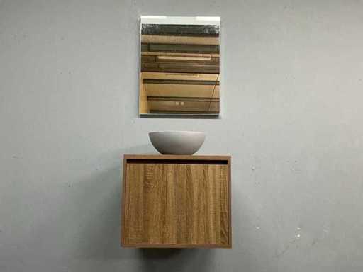 Ensemble de meubles de salle de bain avec : meuble de base 55x60x50 cm, lavabo 38 cm, miroir 60x75 cm