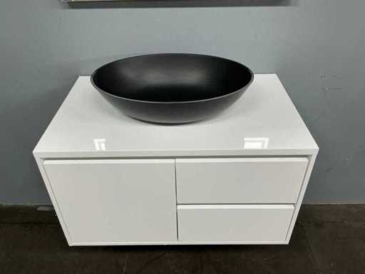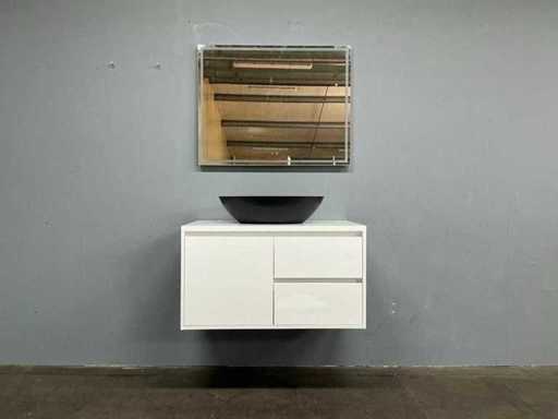 Ensemble de meubles de salle de bain avec : meuble de base 55x90x50 cm, lavabo 57x40x14,2 cm, miroir 90x70 cm