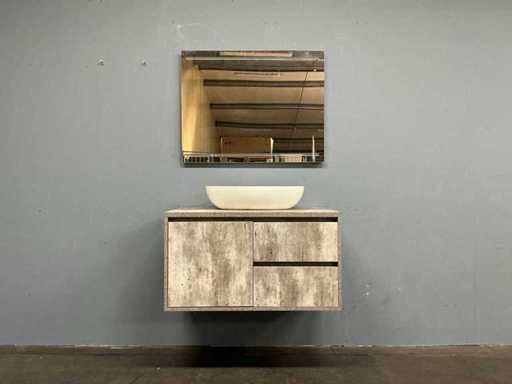 Ensemble de meubles de salle de bain avec : meuble de base 55x90x50 cm, lavabo 57x38x13,5 cm, miroir 90x70 cm