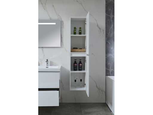 Type : 9015W. Taille : Ensemble 3 pièces : 1* Unité de vanité - 1200x450x600mm, 1* Armoire latérale - 1500x350x350mm, 1* Miroir - 1200x600mm. Équipé de : Robinets incluant un drain escamotable - 4 tiroirs métalliques robustes - Système de tiroir à fermeture douce - Miroir LED avec système anti-embrouillage - Armoire latérale et lavabo préassemblés.