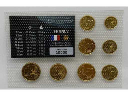 Ensemble de pièces luxembourgeois Euro-Gold-Collection – Plaqué or 24 carats - Limitation 10 000