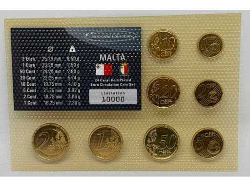 Ensemble de pièces Malte Euro-Gold-Collection – Plaqué or 24 carats - Limitation 10 000
