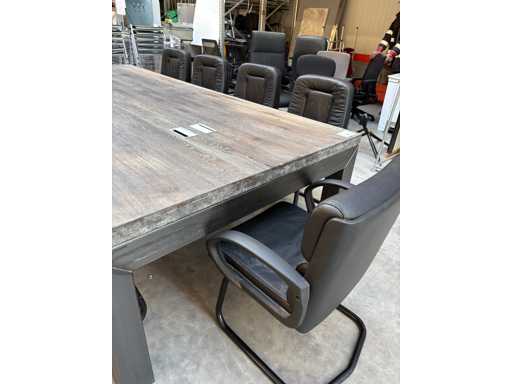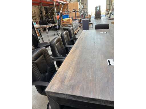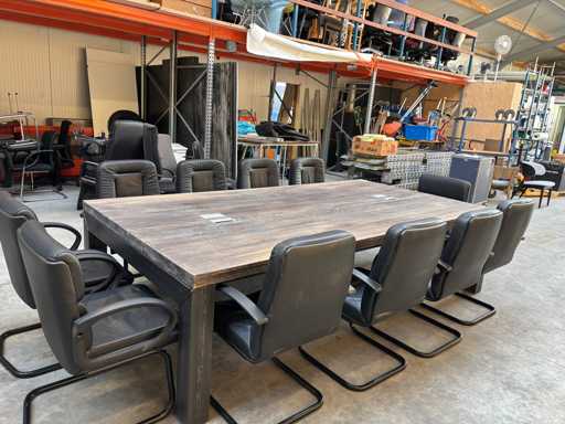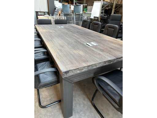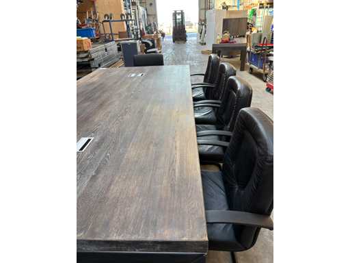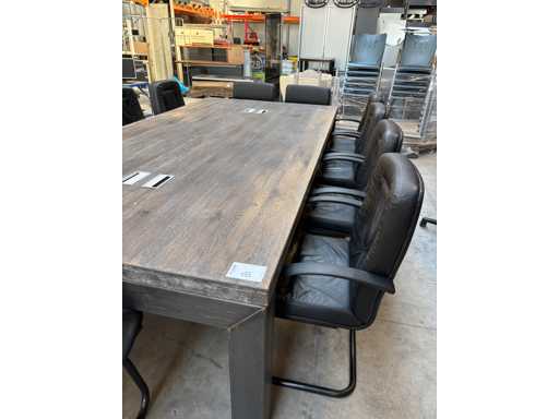 Composée d’une table robuste de 300x150x78 cm et de 11 sièges de conférence