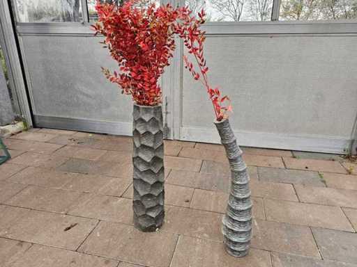 Ajoutez des accents élégants avec cet ensemble exclusif de deux vases en fibre de verre. La surface frappante et texturée d’un gris élégant s’harmonise parfaitement avec les fleurs artificielles rouge vif, qui créent une atmosphère chaleureuse et automnale. Grâce à la fibre de verre robuste, ces vases sont à la fois durables et faciles à entretenir – un élément décoratif intemporel pour les salons modernes, les halls d’entrée ou les locaux commerciaux.