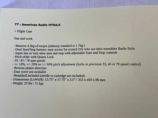 Équipement de lecture LP HTD4.5 d’American Audio