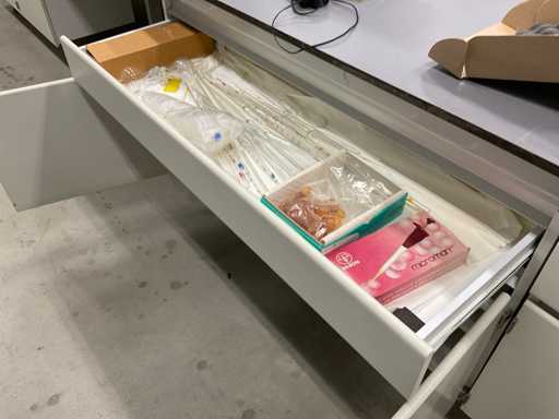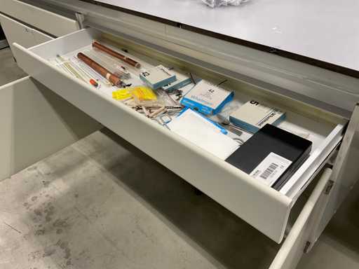 Contenu des tiroirs et des armoires inclus, autres articles séparés non inclus.