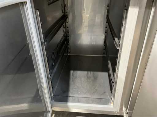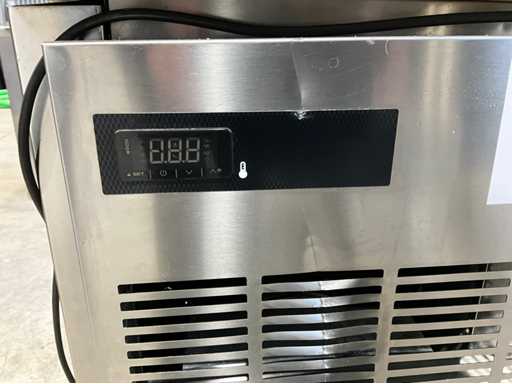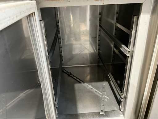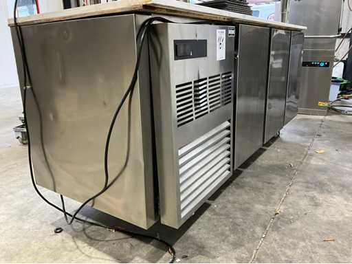modèle intégré ; acier inoxydable ; 3 portes dont 1 ; des étagères ; moteur de refroidissement intégré ; équipée d’un plan de travail en marbre ;