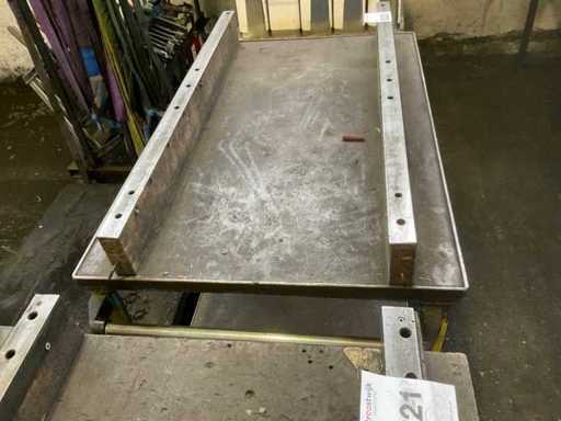 Établi / table métallique avec plateau en bois sur roues, taille 115 x 72 x 108 cm
