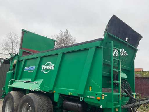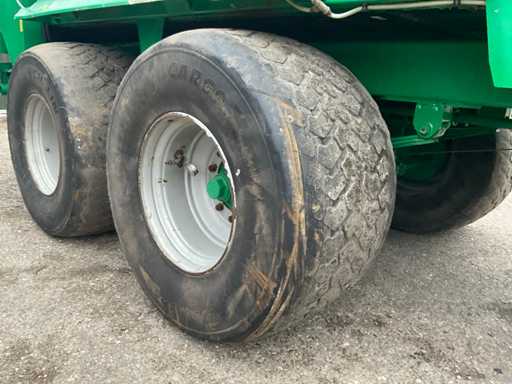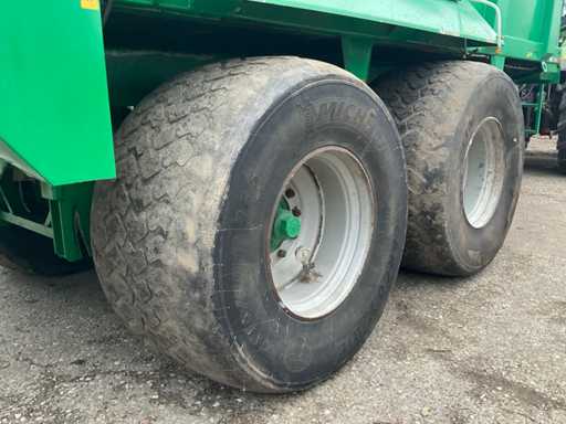 largeur de bande 2300 mm ; taille de cuisson 6000x2000 mm ; charge utile 11500 kg ; la taille des pneus ; équipé d’une glissière de dosage, disques d’écartement, de direction forcée, d’un raccord à billes K80/K50, d’une détection de charge, d’une prise de force, d’un plancher de raclage réglable, d’un panneau de contrôle, d’un essieu lifting, d’un dispositif hydraulique d’écartement latéral, d’un système manuel de changement de pression d’air.