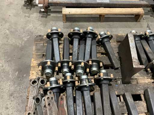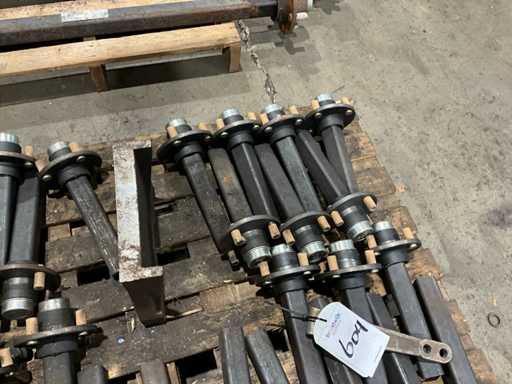 équipée d’une bride à 4 boulons (pas 100 mm), d’une longueur totale de l’axe de 280 mm, le tout monté et avec palette