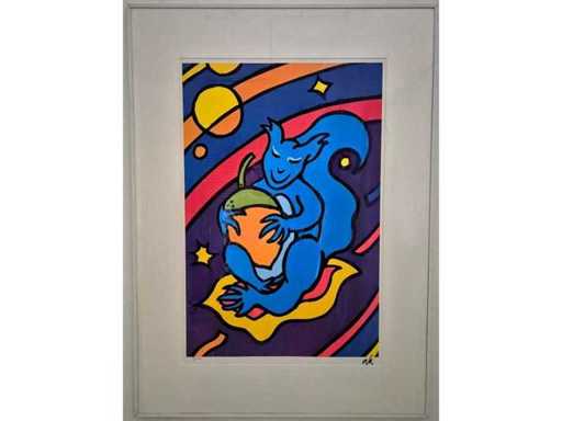 Eva - Lithographie - « Space Squirrel » - 110 x 80 cm.