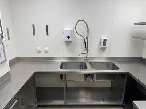 Équipé d’une douche pré-rinçage et de distributeurs comme montré sur les photos.
