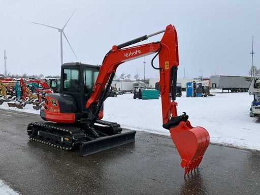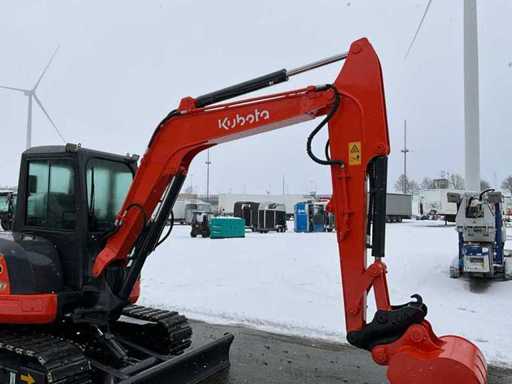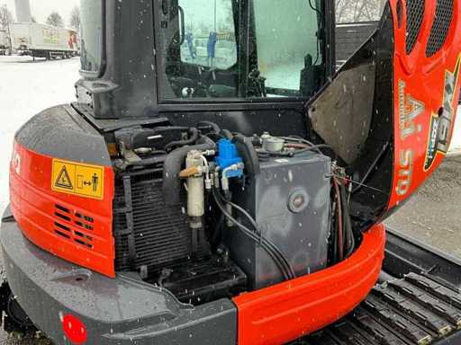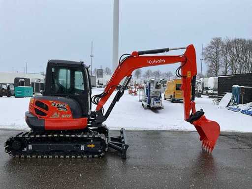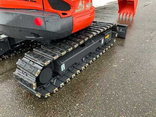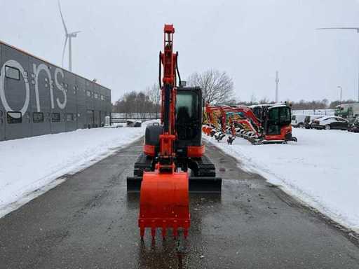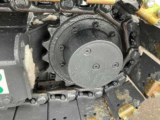 Seau de pelleteuse avec dents de 700 mm, accouplement rapide mécanique, fonction hydraulique supplémentaire, flèche oscillante, lame coulissante, chenilles en acier avec plaquets en caoutchouc, deuxième vitesse de course