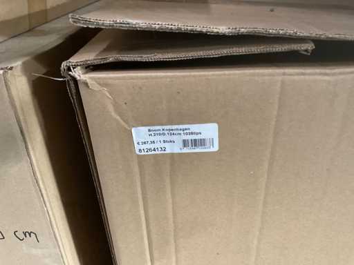 2 palettes et le contenu de l’étagère suspendue dans le rack, arbres de Noël artificiels, y compris les palettes, rack non inclus