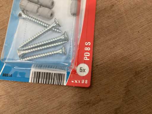 Prise murale à cavité en nylon PD8 avec vis 4x40 mm, blister pack 5 pièces