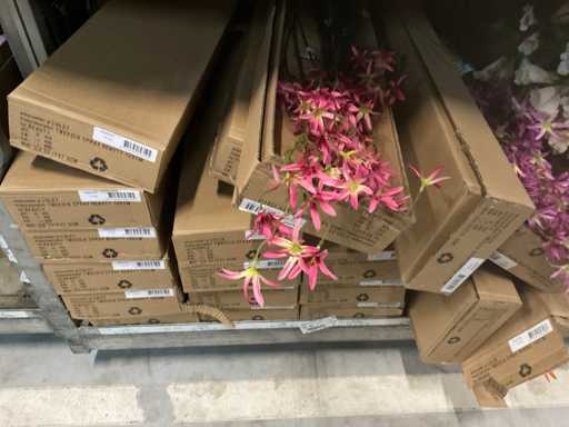 Contenu du chariot, différents types de fleurs artificielles d’émeraude, y compris le jacaranda, le tweedia, la fleur, diverses couleurs, chariot non inclus