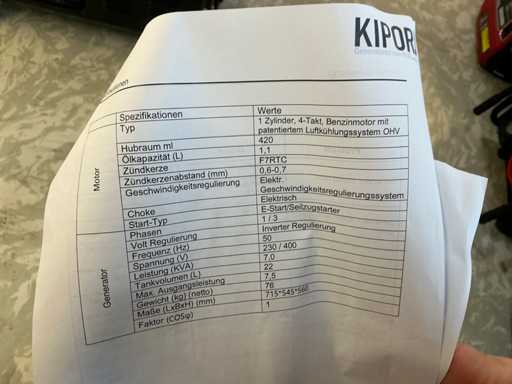 double onduleur mobile (essence+essence) avec moteur essence 4 temps puissant, 1 cylindre, système de refroidissement par air breveté OHV, puissance maximale de 7,5 kW ;