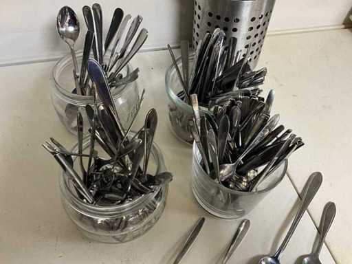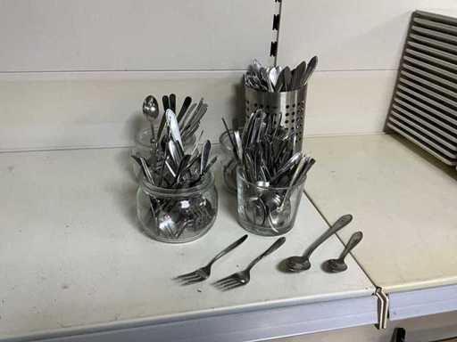 Différents modèles de fourchettes à gâteau, cuillères à dessert et cuillères à café.