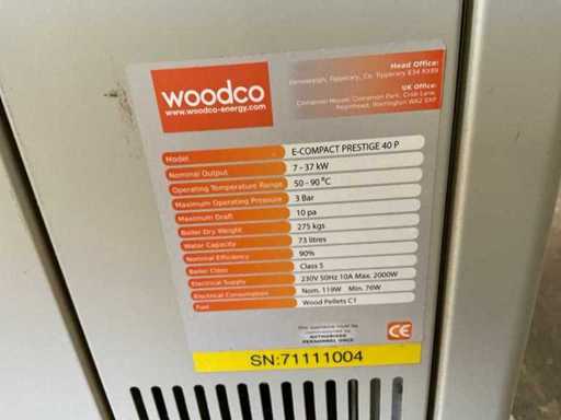 Carburant : Granulés de bois C1, capacité d’eau : 73 litres. Comprend : taille du bunker : 890x800x1280 mm