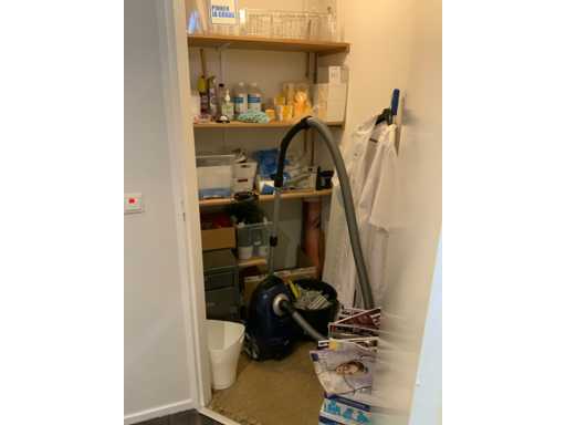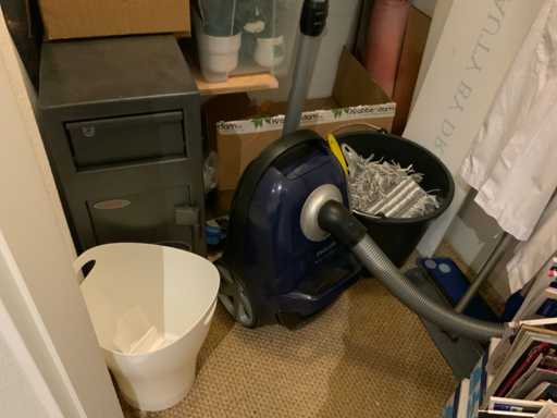 L’espace de contenu comprenant l’affichage des dossiers, le gestionnaire d’étiquettes Dymo, divers fournitures de bureau, un aspirateur, des magazines et autres