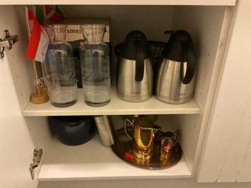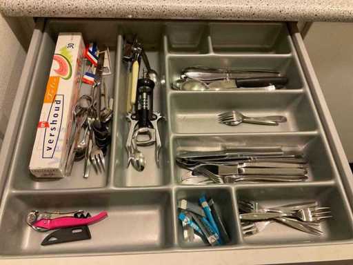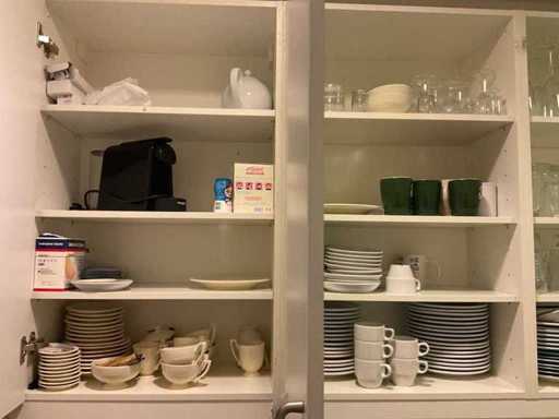 Le contenu de la cuisine comprenait de la vaisselle, des couverts, de la verrerie, des accessoires pour le café et le thé. Un réfrigérateur EDY, une poubelle, etc. Pièces de cuisine fixes non incluses