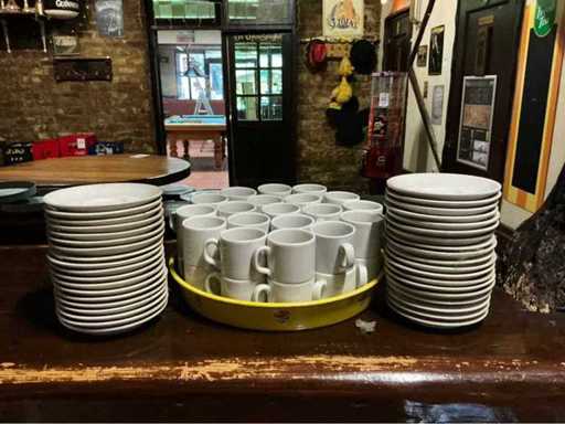 Divers porte-feutres à bière, jetons, vaisselle, tiroirs-caisses et articles publicitaires