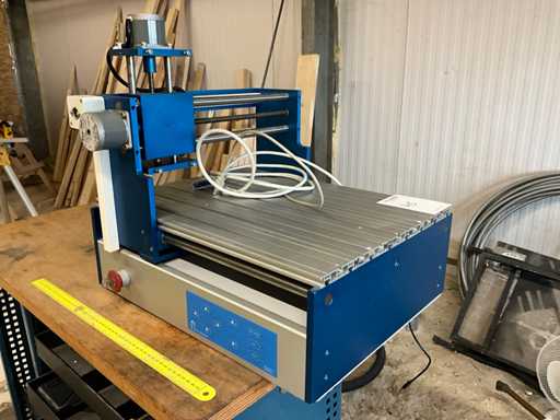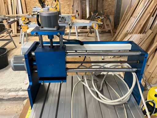 propulsé par un moteur pas à pas Sanyo Denki Step-Syn, comprenant un moniteur et un PC avec un logiciel de contrôle Mach3.