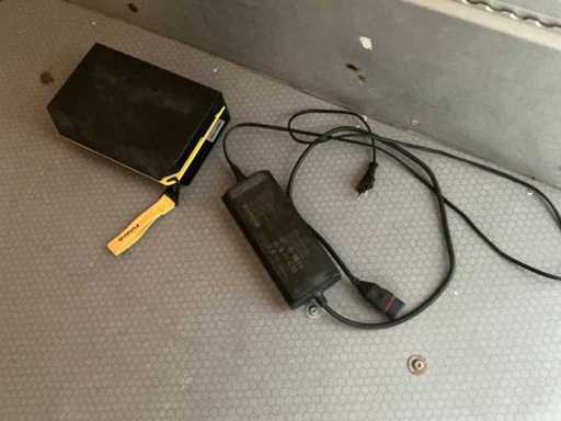 Comprend un chargeur 230 volts, un nombre de touches 1, 2x batterie, une boîte intérieure 170x80x150cm, note ! Non utilisable, le contact ne s’allume pas, la batterie indique la tension, selon les spécifications la batterie système serait vide/défectueuse.