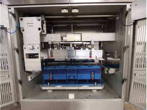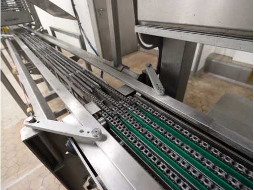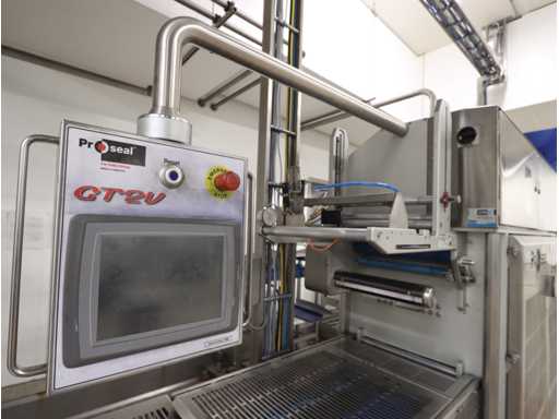 Largeur maximale de rouleau de film 340 mm, équipée d’un fonctionnement tactile, incluant une station tampon « Intray » et un convoyeur en chaîne avec taquets,