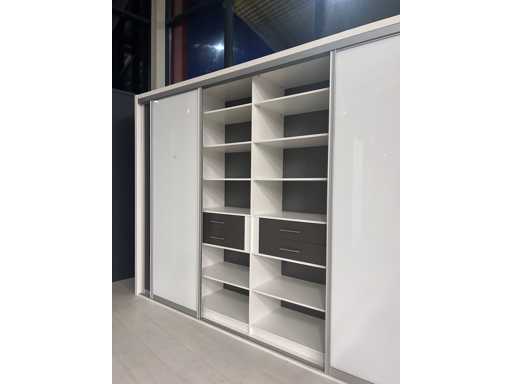 Profondeur des étagères 60 cm, équipée de 4 portes coulissantes