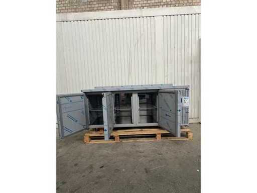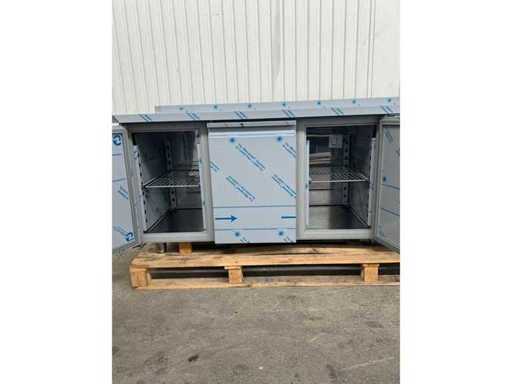 C’est un plan de travail réfrigéré à trois portes, idéal pour l’industrie de la restauration, par exemple pour le refroidissement et la préparation des aliments.