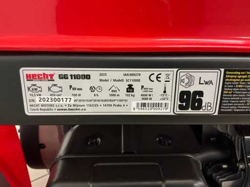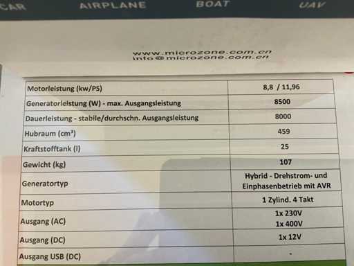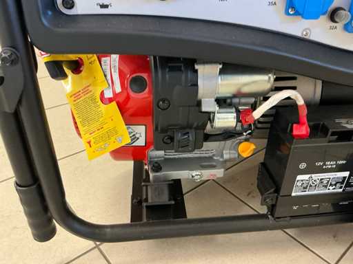Technologie AVR, 1 cylindre / 4 temps / OHV, démarreur électrique, batterie 12 V / 17 Ah, 8,8 kW / 11,96 ch * SAE J1940 standard, cylindrée (cm³) 459 cm³, régime moteur nominal : 3000 tr/min, réservoir de carburant - volume 25 L, 230 V/400 V, max. 8,5 kW, puissance continue : 8,0 kW ;