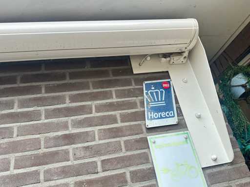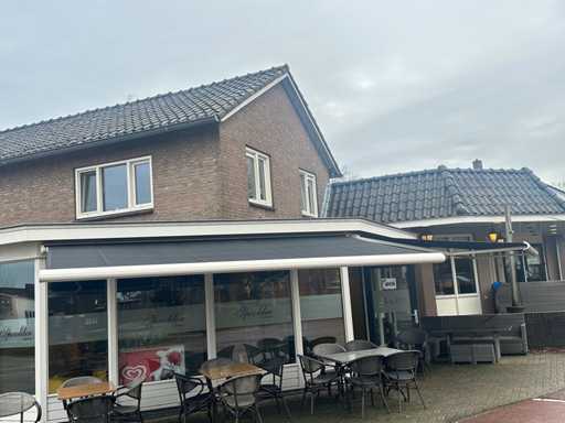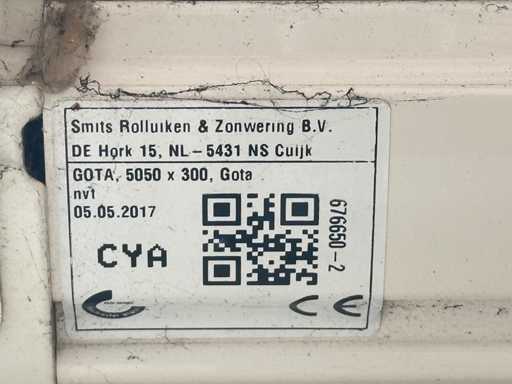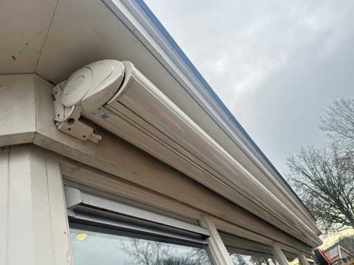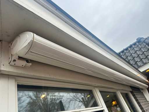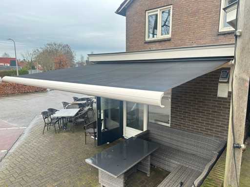 Ce terrain se compose de 2 auvents avec télécommande. Facile à assembler soi-même grâce au système spécial à enficher. Les dimensions sont : 5050x300 cm (LxD) et 4300 x 300 cm (LxD). Les écrans sont équipés d’un tissu noir Tibelly. En bon état.