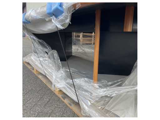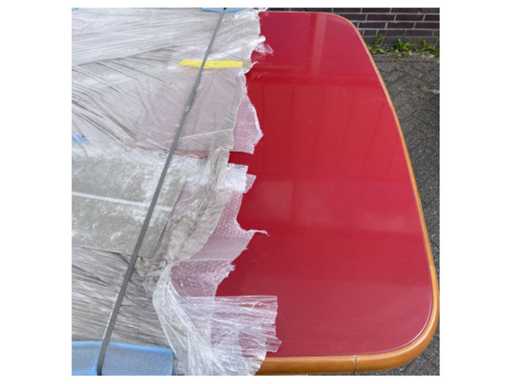 Grande table maritime rouge de 325 cm avec cadre noir robuste et pieds en bois pour navires