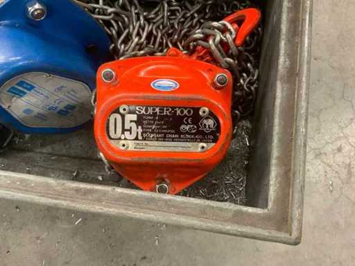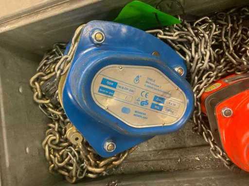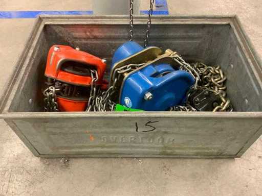 Équipé de 3 palans manuels des marques Rema, Elephant Super 100 et Thiele.